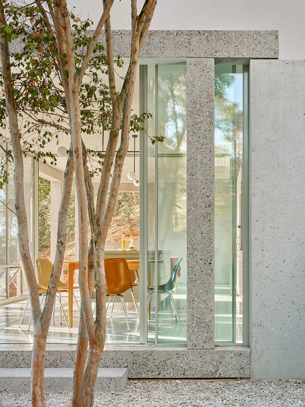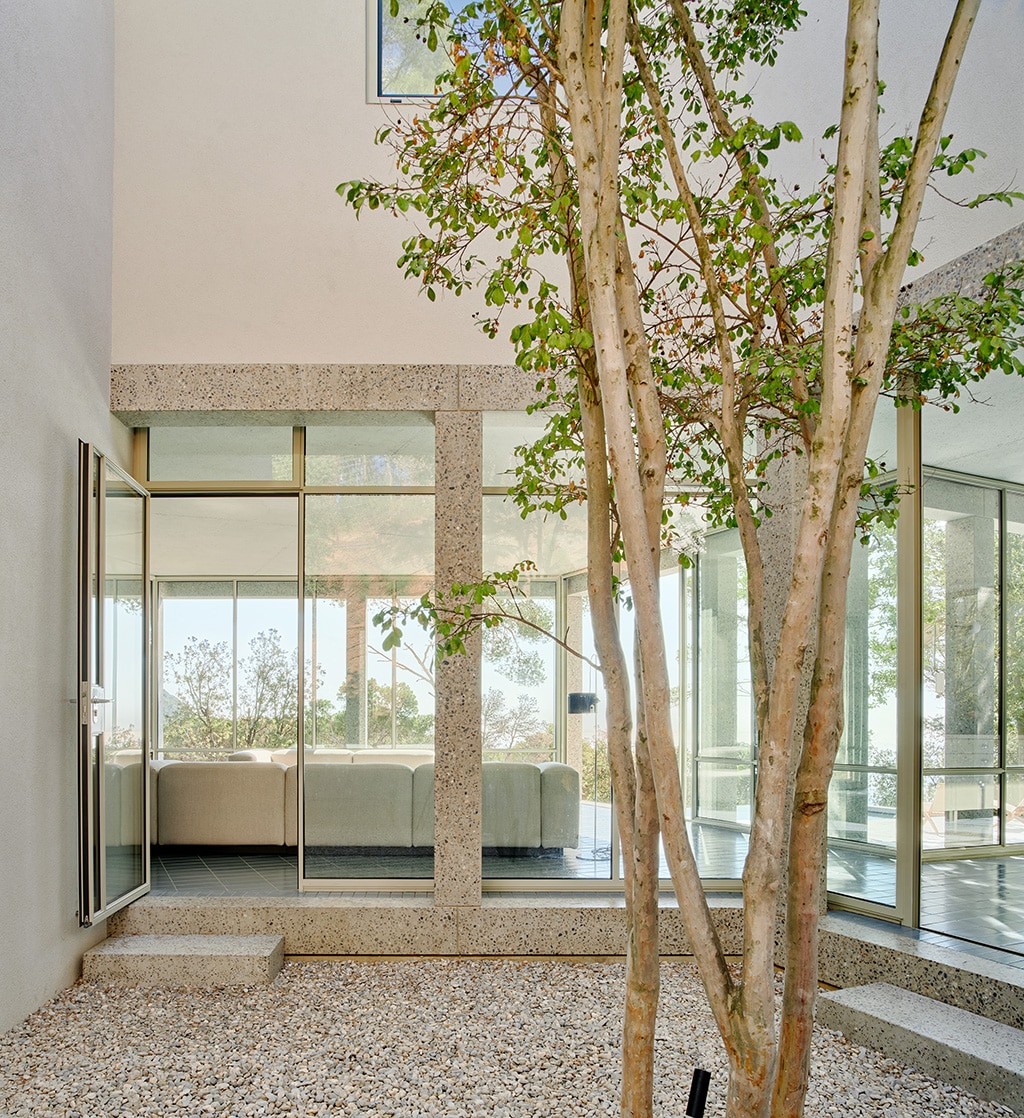 La complejidad del proyecto radica en la precisión estructural, la limpieza formal y la voluntad de crear envolventes casi invisibles. En este sentido, la incorporación de carpinterías Jansen Arte y sistemas deslizantes Vitrocsa aporta una ligereza excepcional y unas líneas extremadamente esbeltas, combinando una estética industrial refinada con un rendimiento técnico sobresaliente. Gracias a estos sistemas de alta gama se logra maximizar las aperturas, diluir los límites interiores y exteriores y potenciar las vistas sin comprometer la eficiencia energética ni la estabilidad del conjunto.